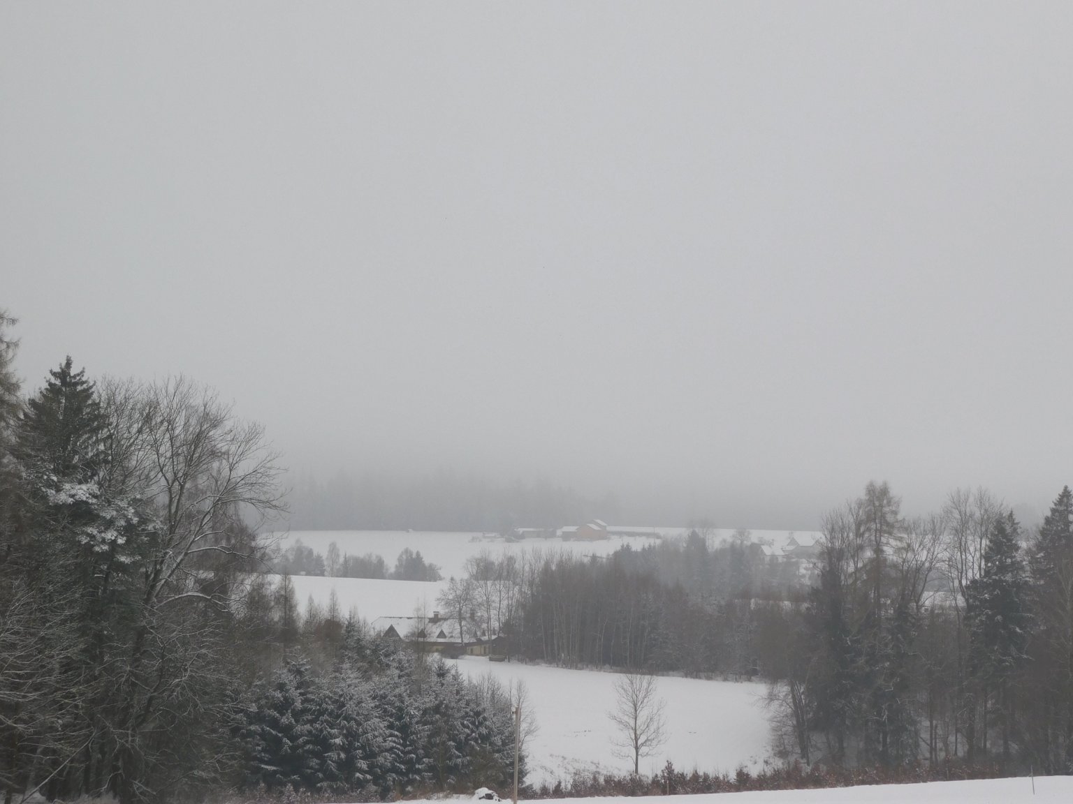 2°C, Mírné až slabé sněžení, Sníh: 10 cm. Sněžení už ustava... Sice něco připadlo, ale jelikož máme nad nulou, tak sníh dost zmoknul a dost sesedl...