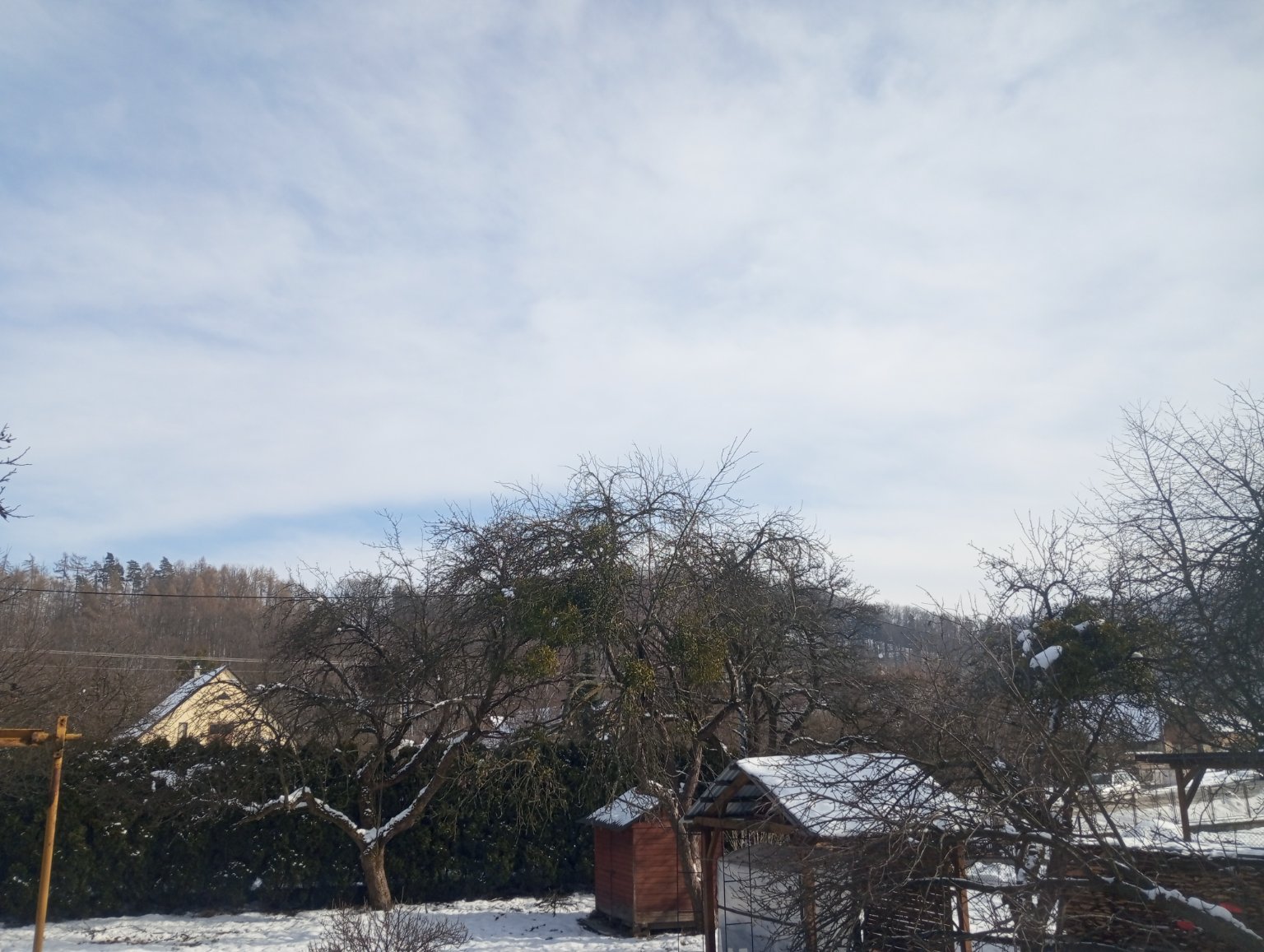 Čerstvý severák fouká, vlhkost 61%, min. -4,4°, tlak setrvalý, za dva dny bude sníh už končit..