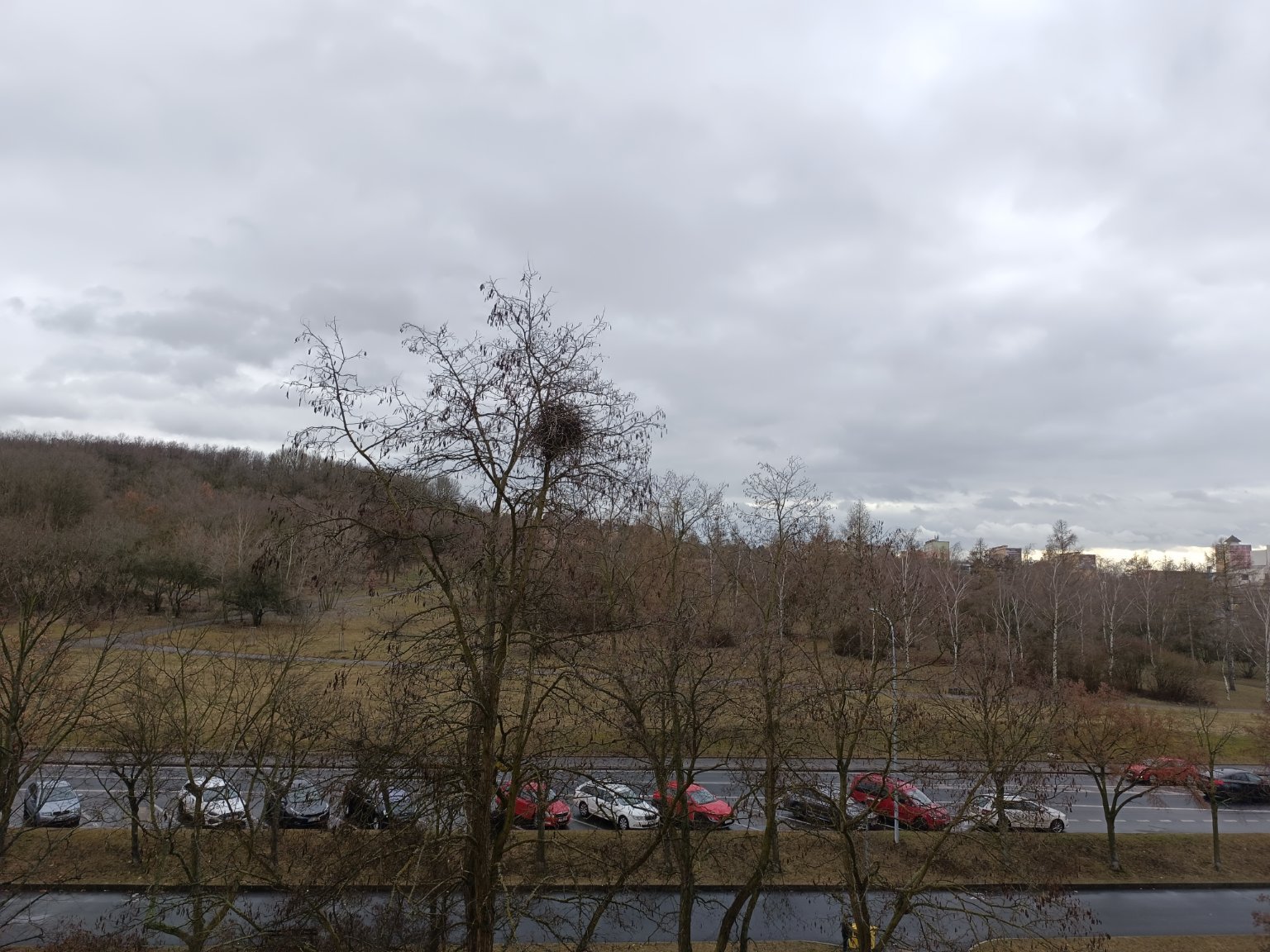 Zamračené, slabé sneženie
