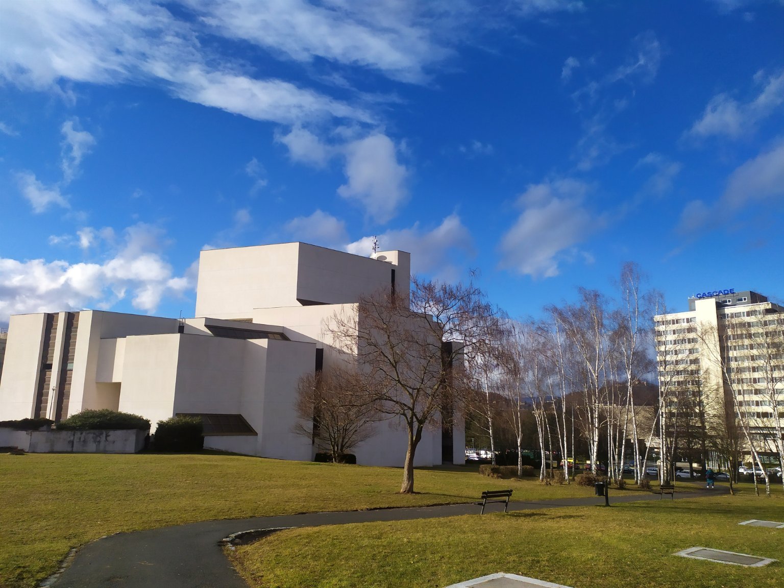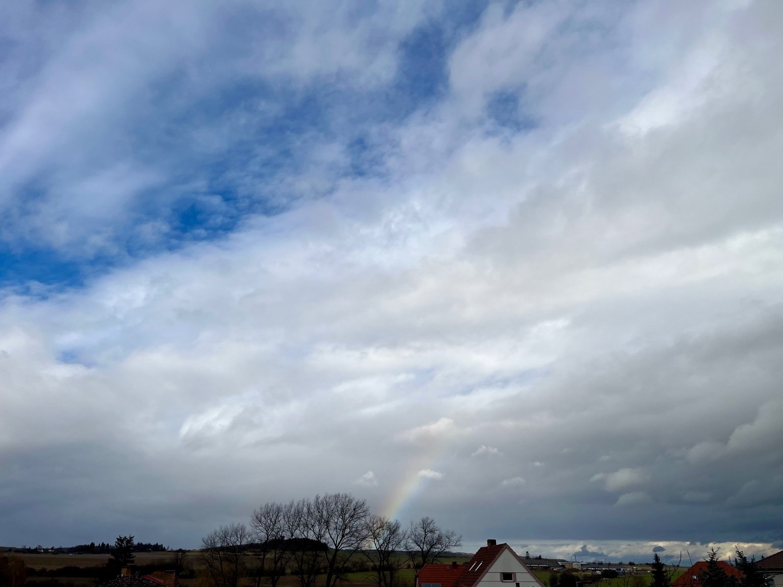 Polojasno až oblačno, malá přeháňka v dálce, tlak 1012.4 hPa.