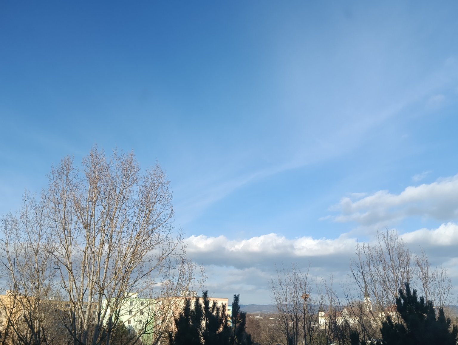 Polojasno, objevuje se vysoká a kupovitá oblačnost. Na Slunci je opět teplo.