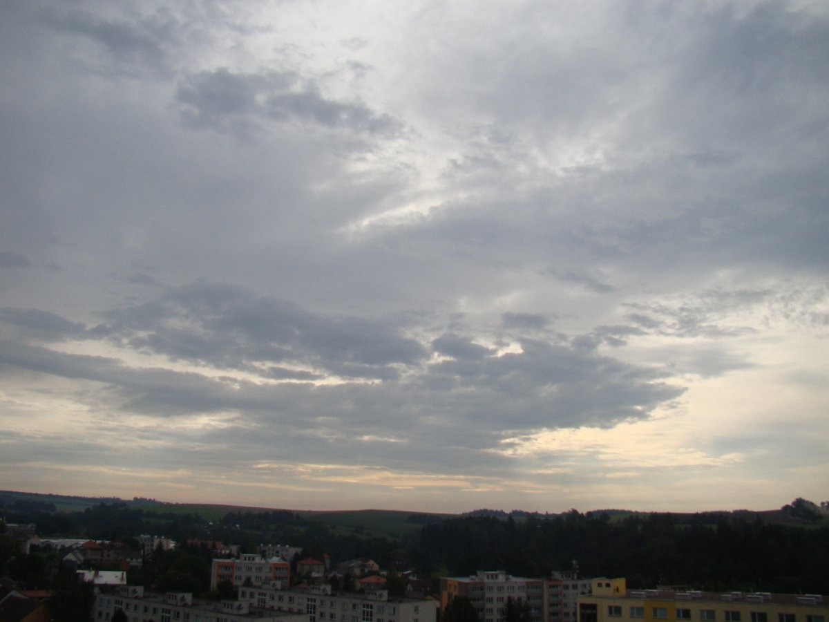 Teplo až dusno. Od SZ se zatahuje. Vítr J.