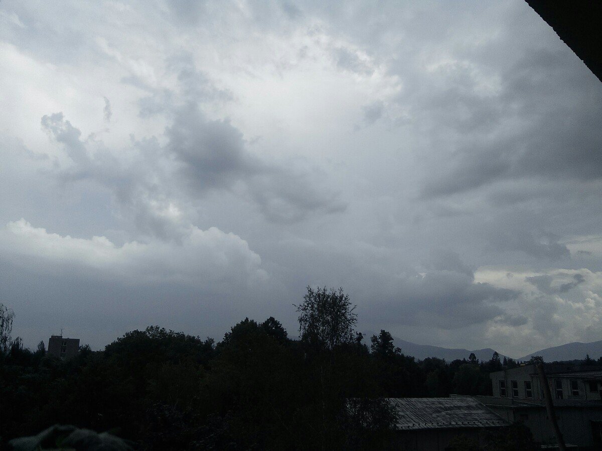Zataženo, ze západu se blíží černé mraky snad zaprší. JZ vánek, tlak 1015,3 hPa a vlhkost 59 %. Rozpršelo se ve 14,55 hod.