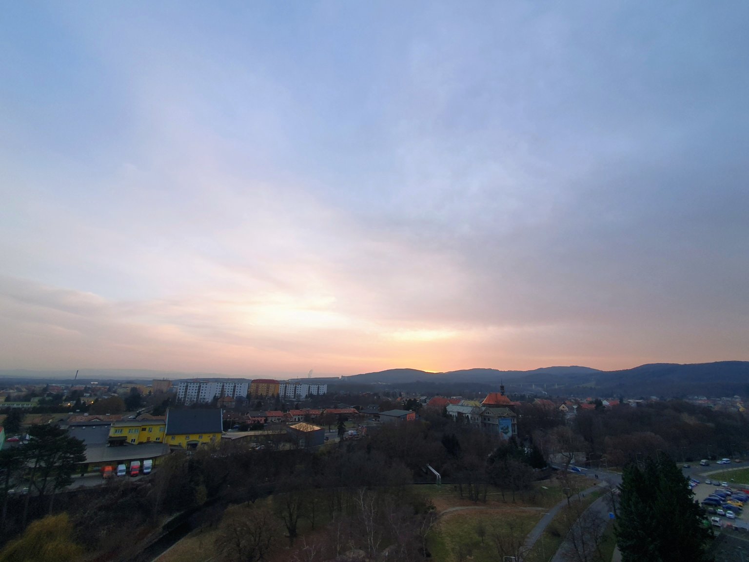 Vysoká oblačnost v dálce, nad námi je ale jasno.