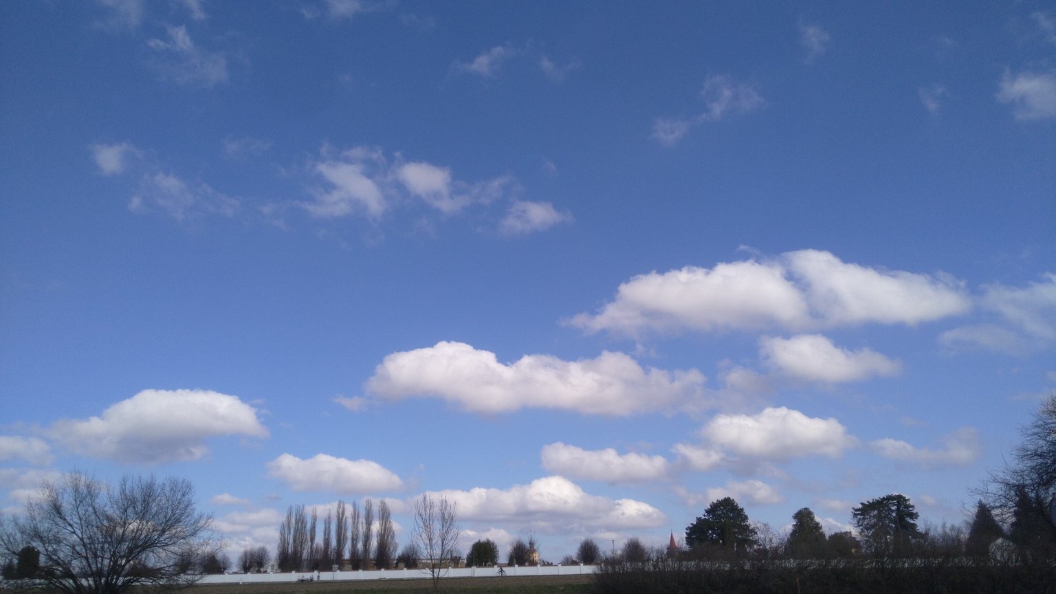 Slabý J vítr, vlhkost 55%, min. 1,5°, tlak prudce klesá. Stromy zatím moc neraší..