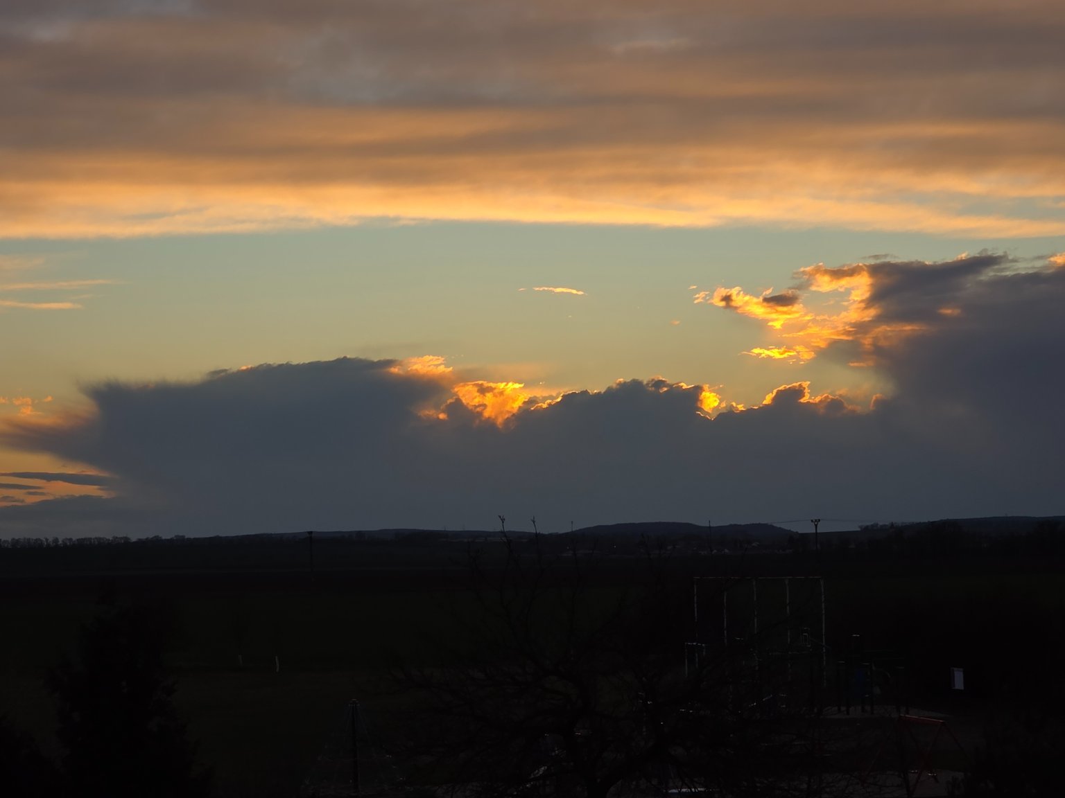 Oblačno, klidno, tlak 1015 hPa.