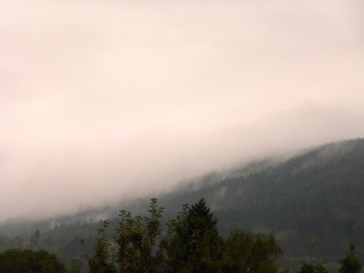 Začalo pršet 15,30 hod. Vytrvalý déšť ustal v 19,45 hod. Teď je tu mlha. Dohlednost cca. 500 metrů. VJV vánek, tlak 1005,6 hPa a vlhkost 98 %.