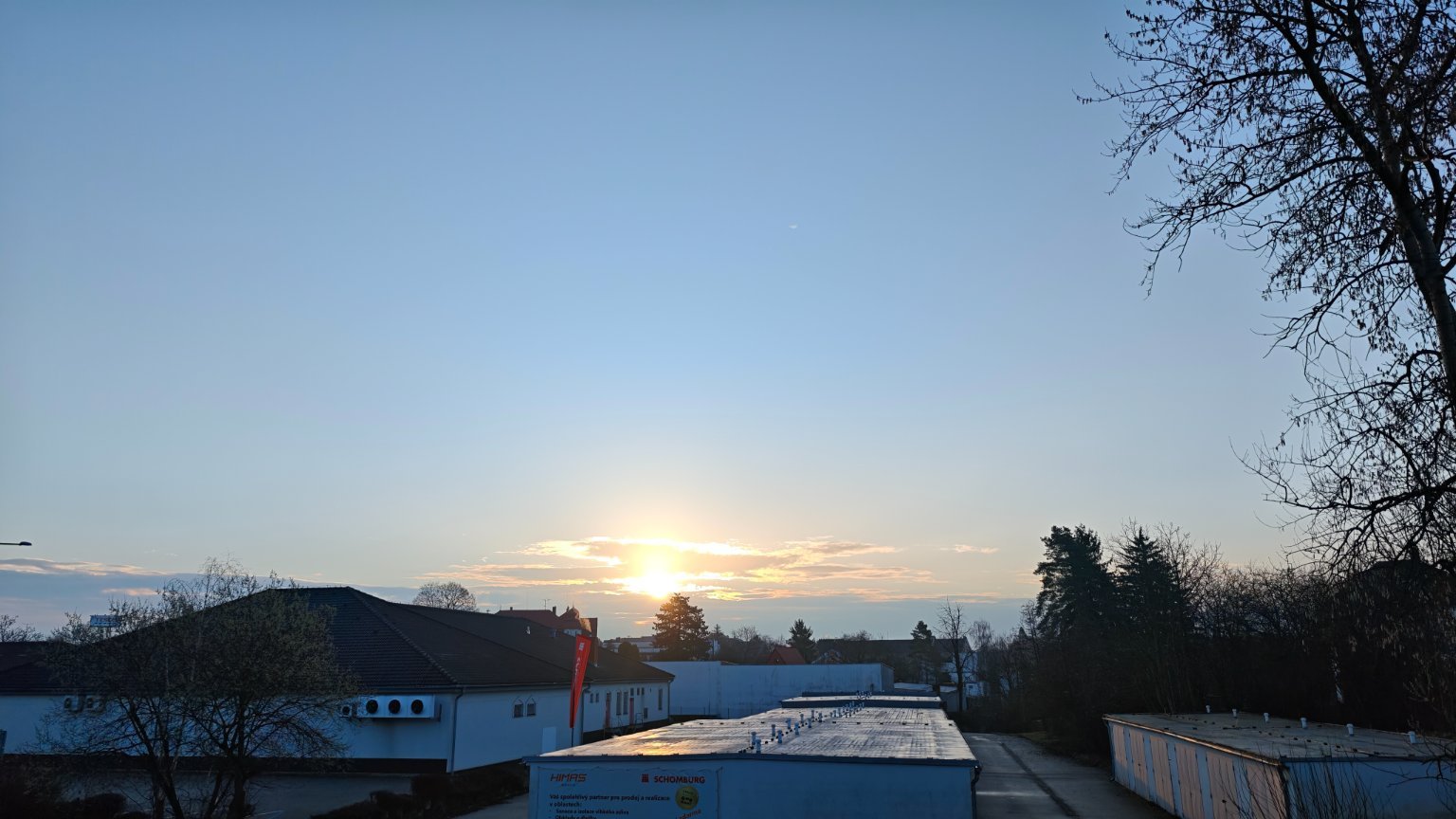 Slabý JZ. vítr, od západu ubývání oblačnosti, tlak 1023 hPa.