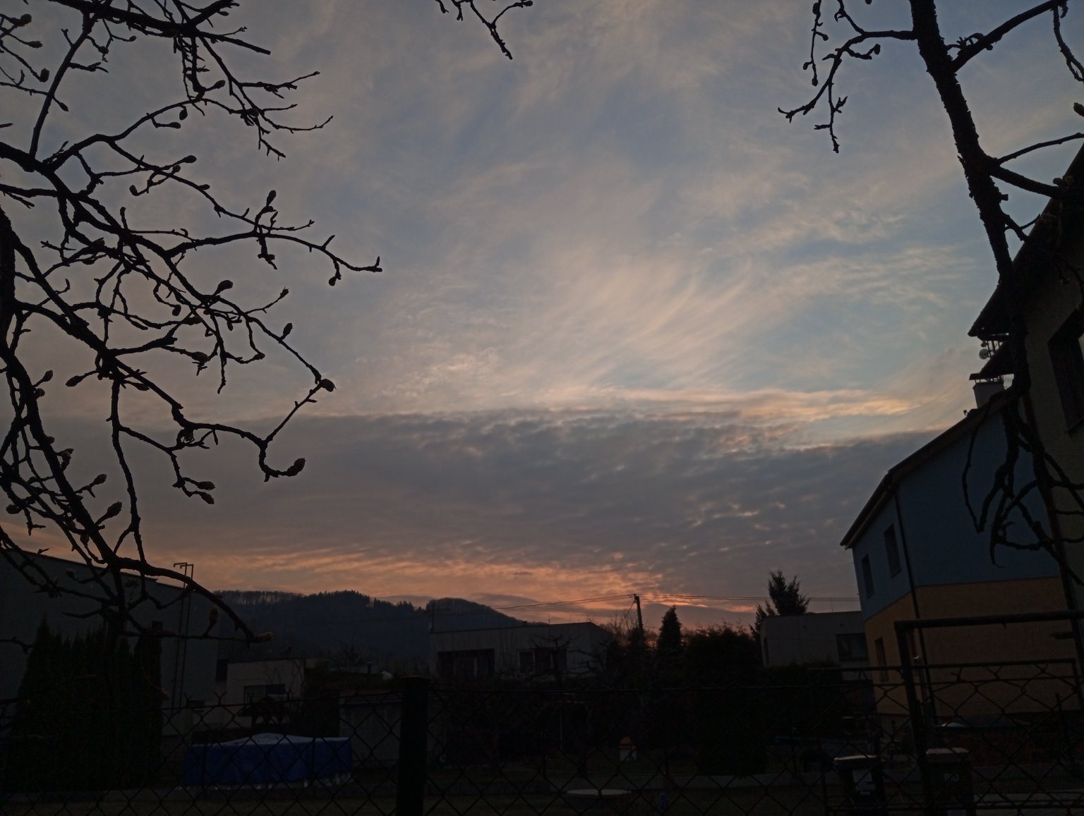 Polojasno až oblačno, západ Slunce.