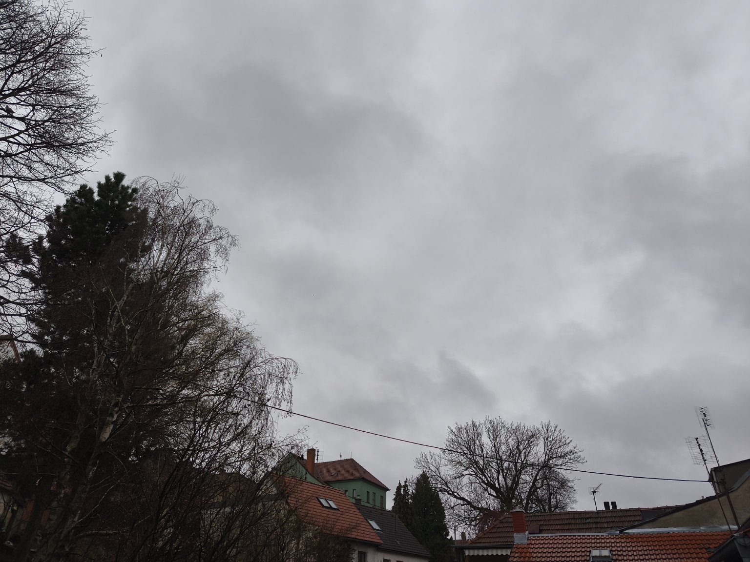 Zataženo, ráno pršelo, nyní je déšť jižněji. Napršelo 1,4 mm. Fouká většinou slabý vítr.