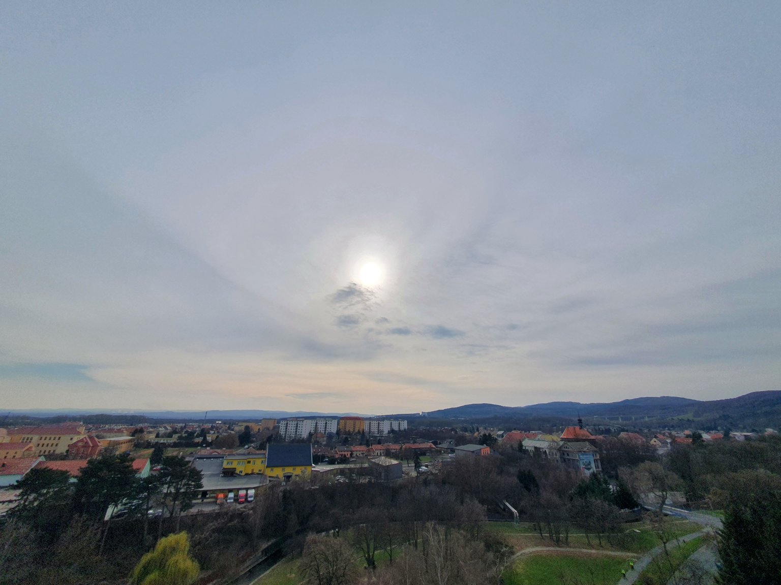 Polojasno, slabý západní vítr, tlak 1017,3 hPa.