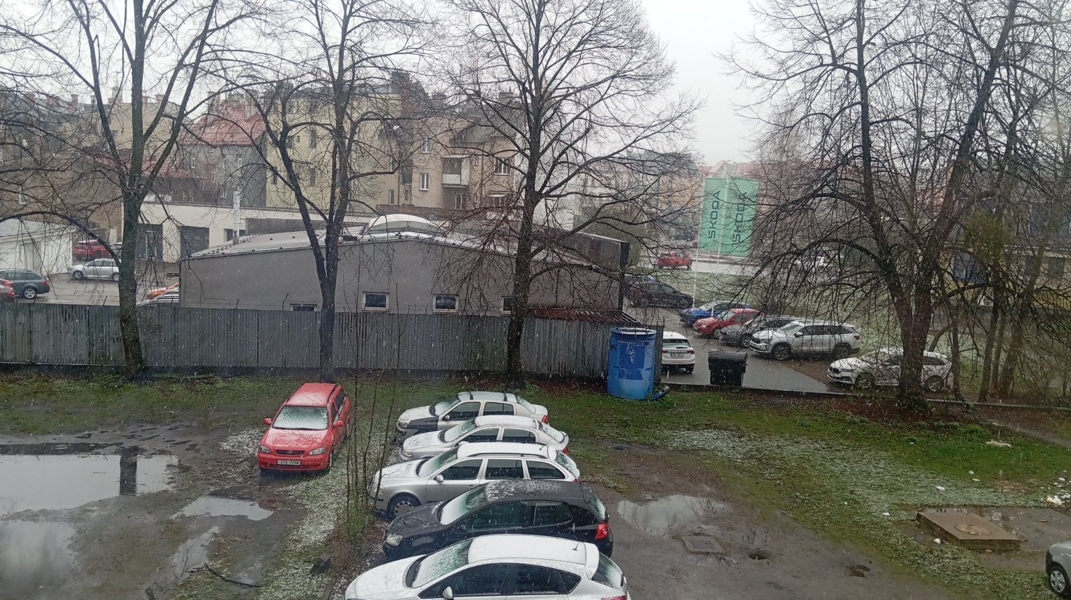 Střídání deště se sněhem nebo mokrým sněhem. Bezvětří, na hřebenech kopců je sníh)