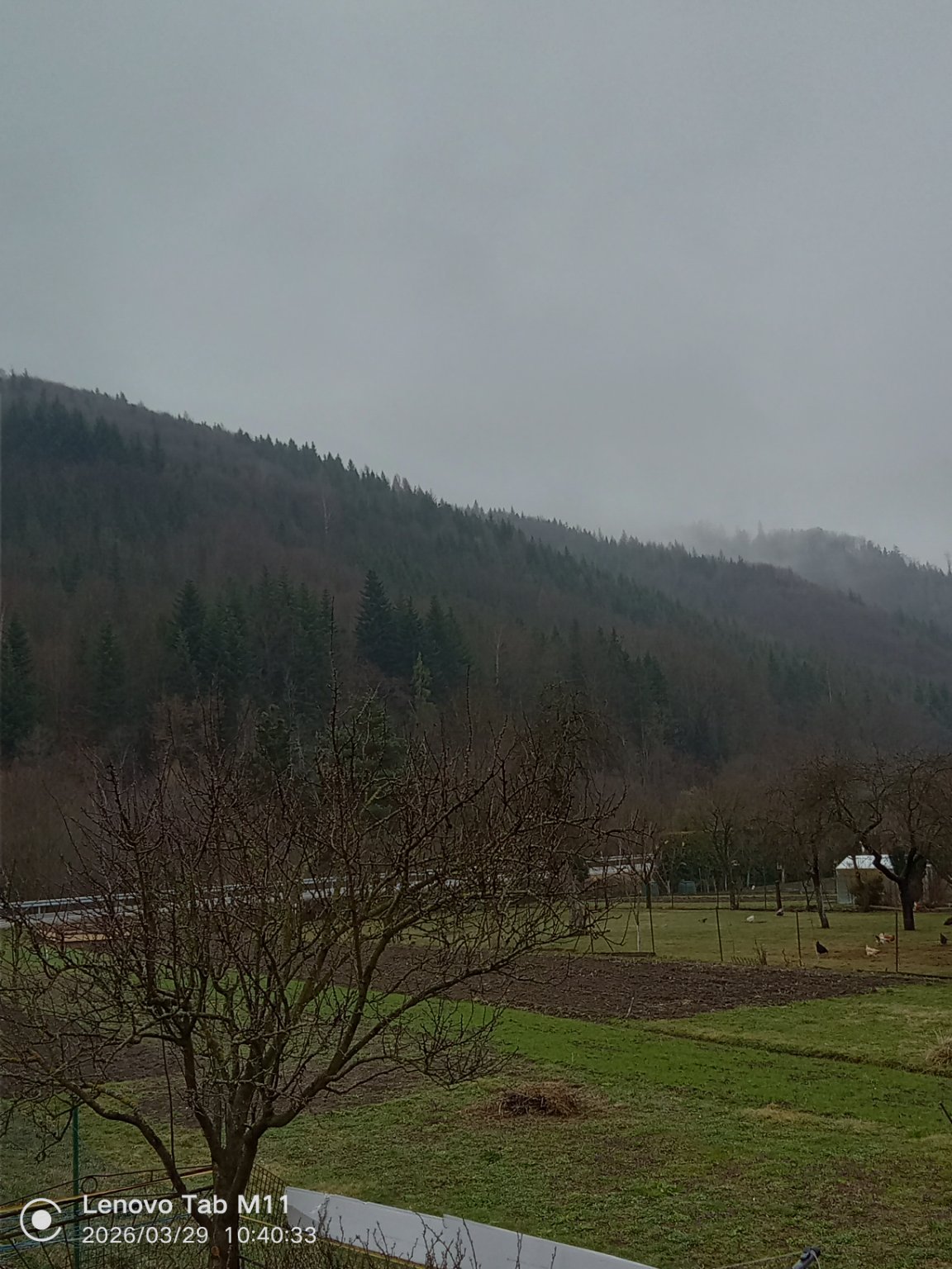 Začalo slabě pršet. Vane slabý proměnlivý vítr.