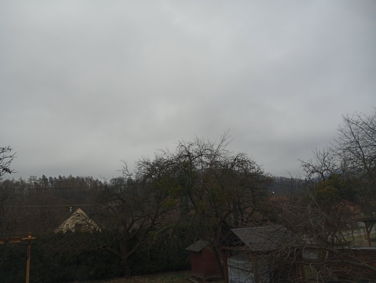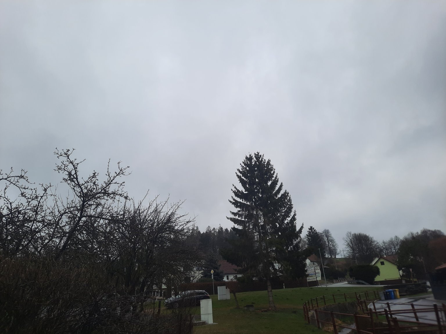 Po dešti, slabý severní vítr, tlak 1023,3 hPa.