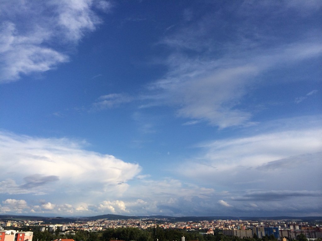 Slabá přeháňka,v dálce se blýská,mírný vítr,tlak 1010hPa,vlhkost 54%