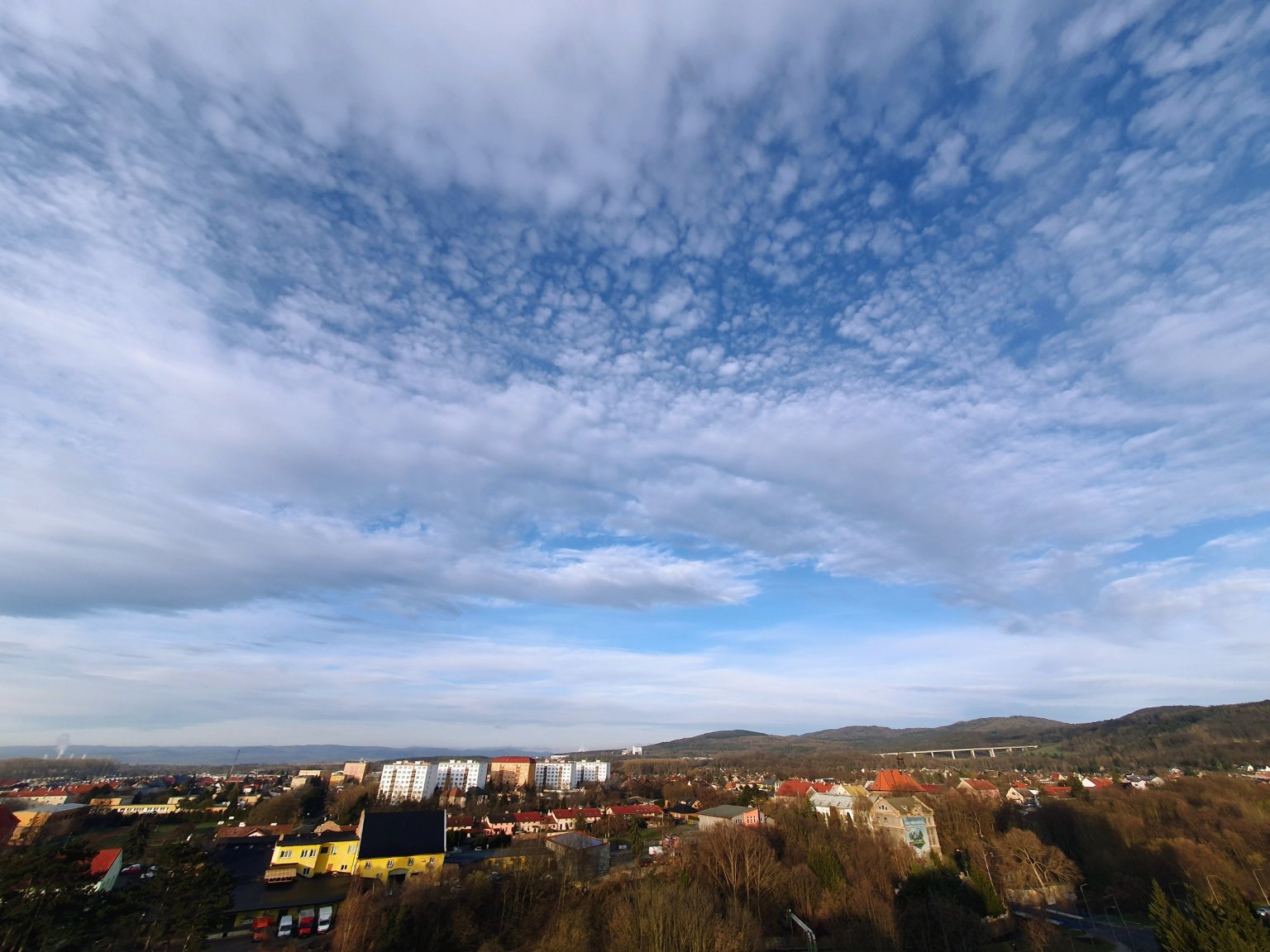 Mlha, přes kterou prosvítá Slunce.