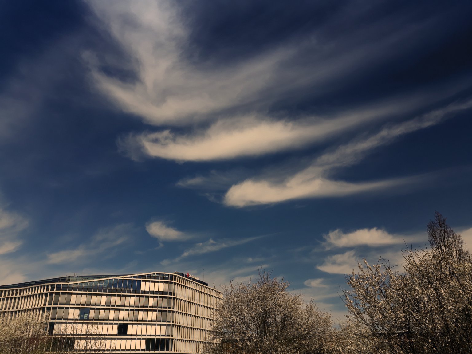 Mírný jihozápadní vítr, tlak 1017,8 hPa - mírný pokles. (Ráno 1020,7 hPa)