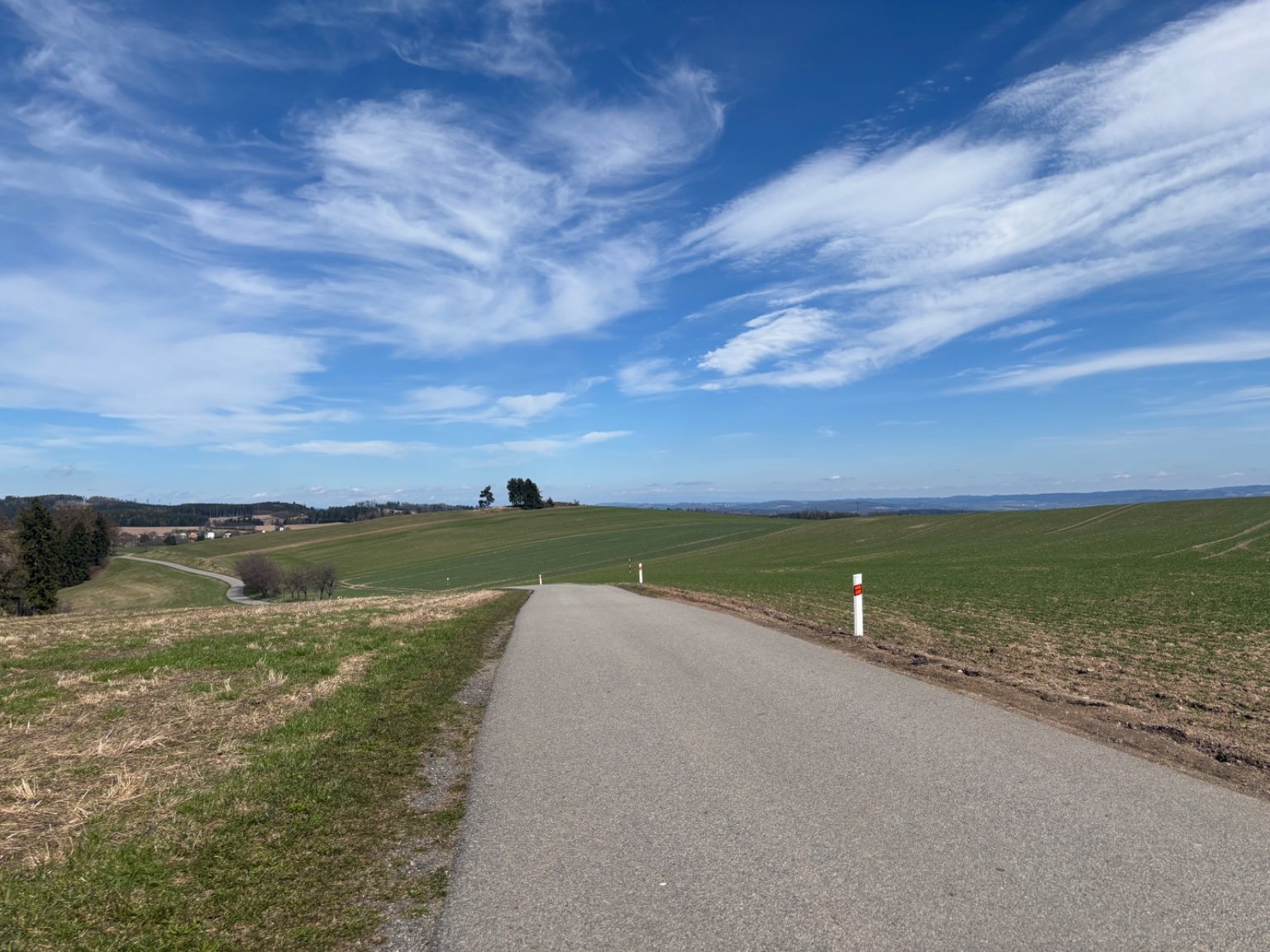 Vysoká oblačnost. Vánek nebo slabý vítr, při cestě sem a teď trochu jdou vidět cummuly, hlavně na vyšších poloh