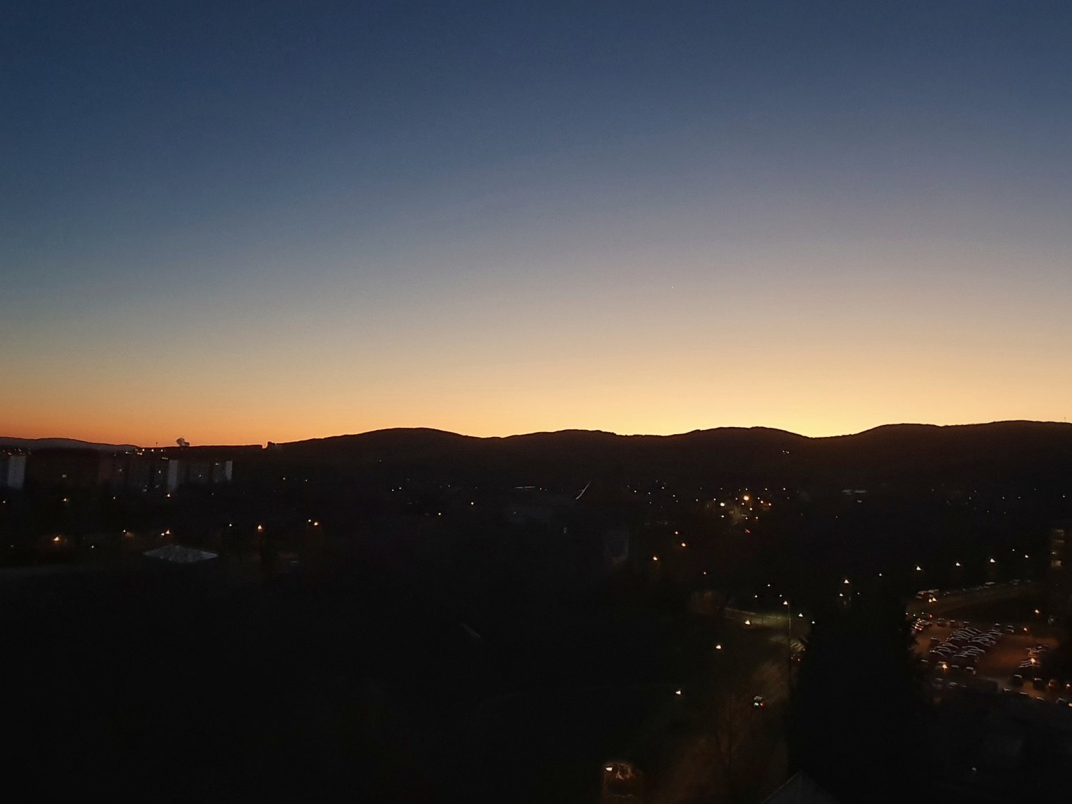Jasno až skoro jasno, slabý vítr, tlak 1024,4 hPa.