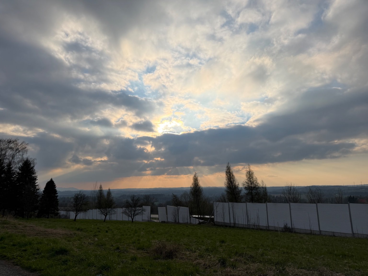 Je jasno a vane studený severní vítr. Ten černý mrak na obloze je s požáru u Staré Paky.