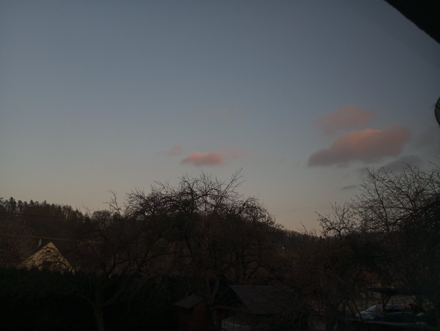 Vzduch je dnes velmi chladný, i přes minimální oblačnost se teplota nedostala nad 10°C Ráno teplota klesla na -0,3°C, zítra to bohužel vypadá na mnohem silnější mráz. Vane čerstvý severovýchodní vítr, tlak: 1019hPa.