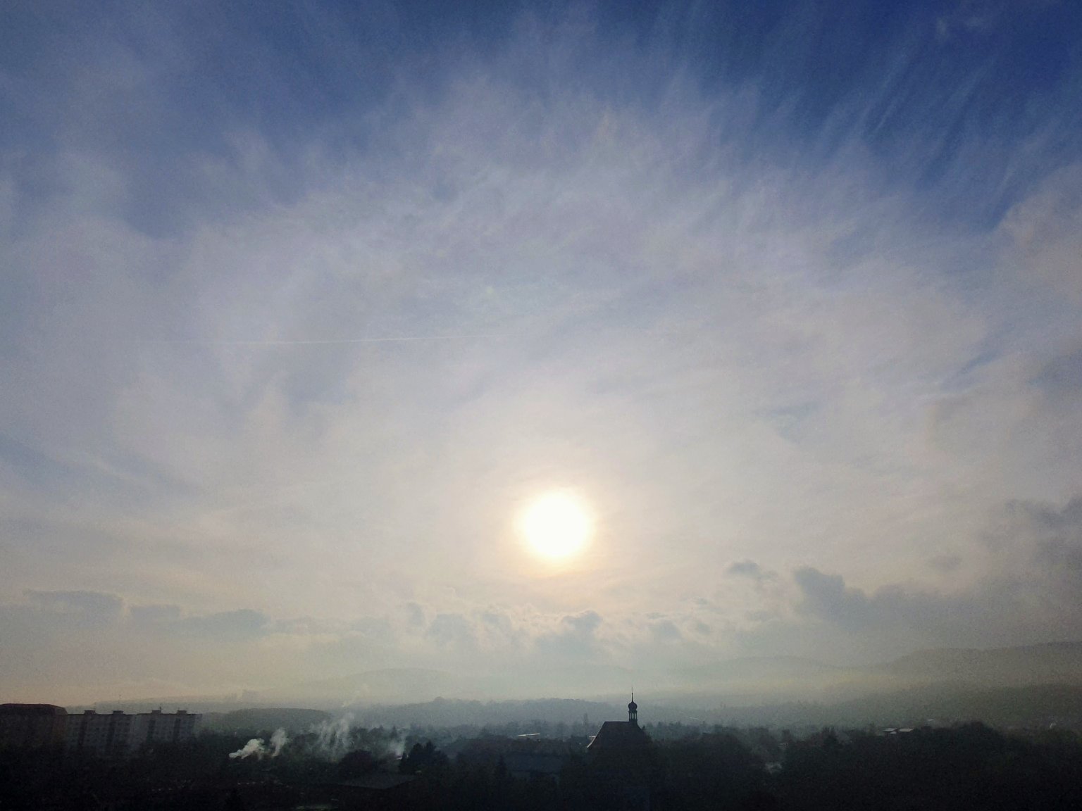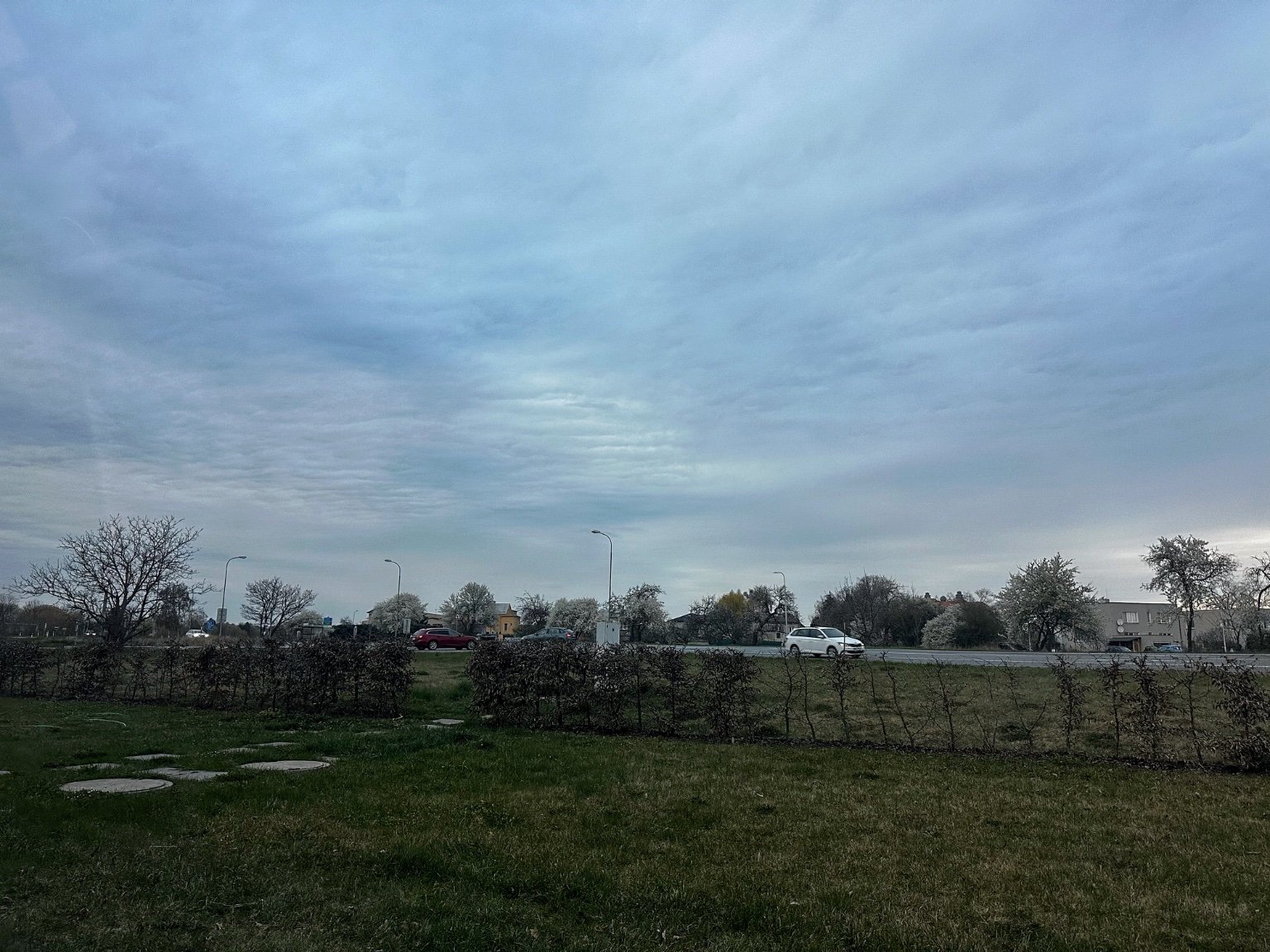 Polojasno, byly tu zbytky deště. Bezvětři nebo vánek