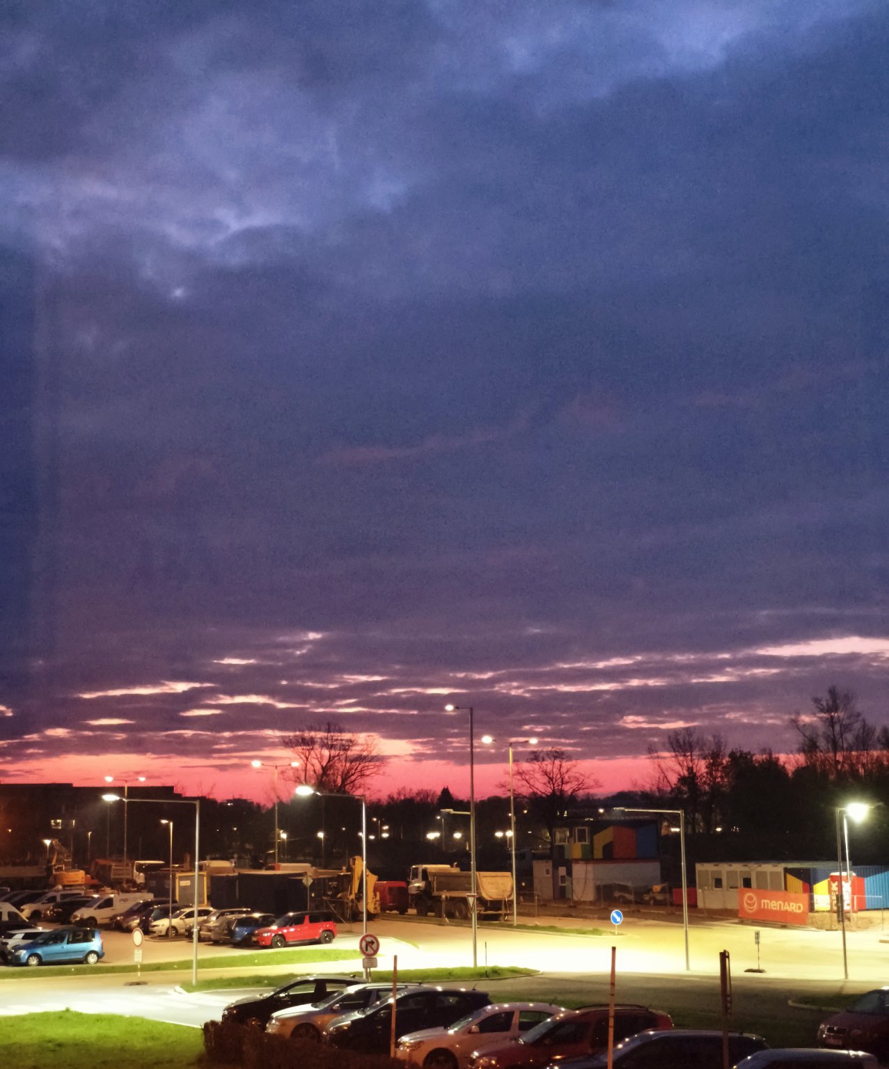 Polojasno až oblačno, v dálce krásně barevná obloha.