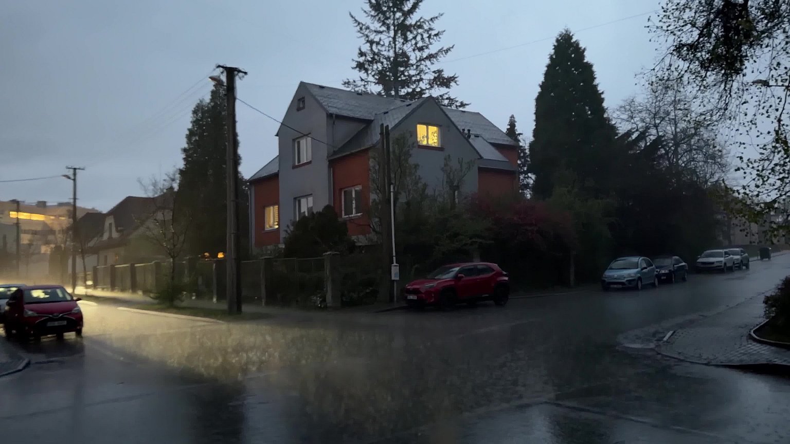 5,6°C, Slabá dešťová přeháňka. Dorazily zbytky té bouřky..