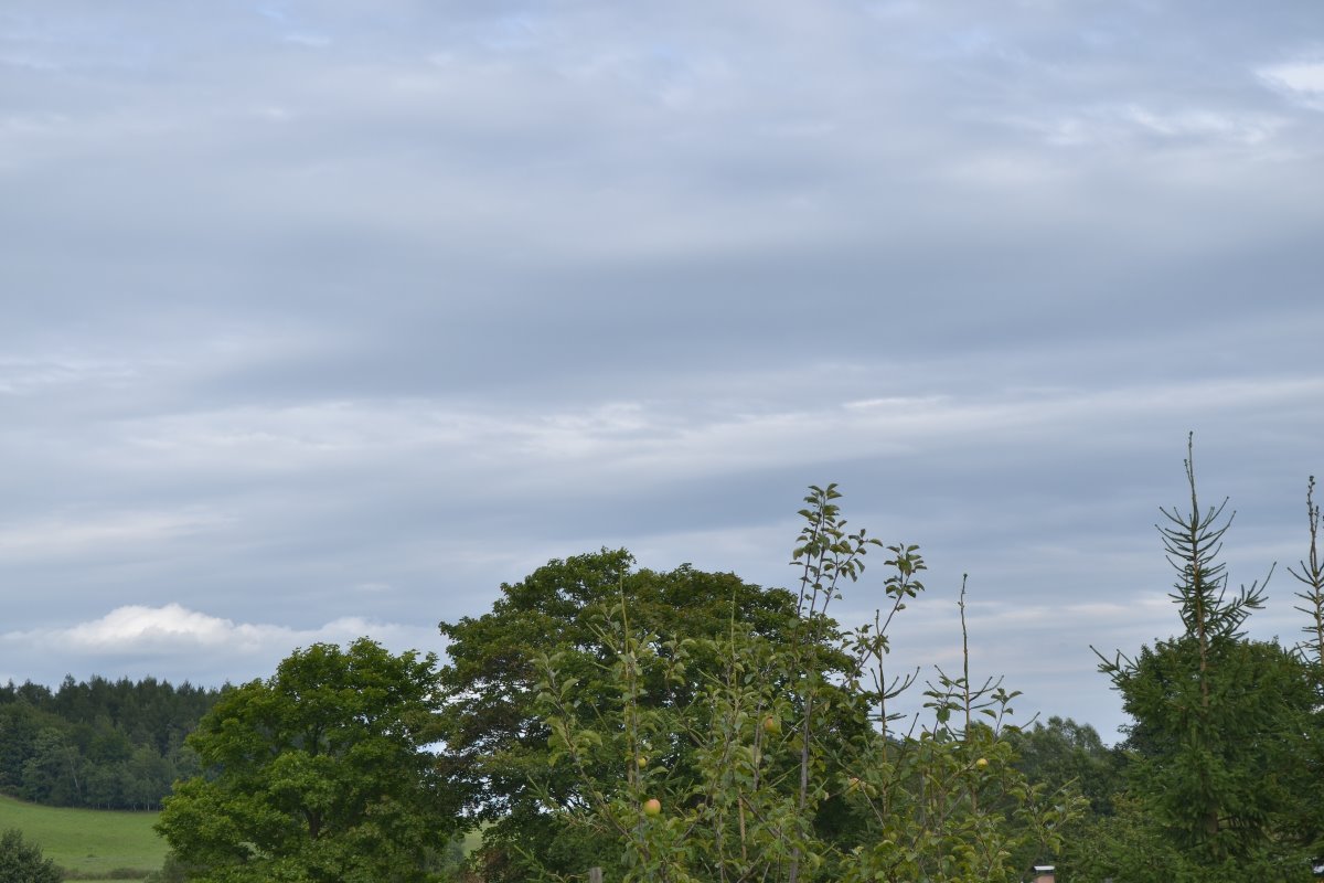 Drobně prší,ale od západu se oblačnost protrhává,tlak 1011hPa,vlhkost 62%