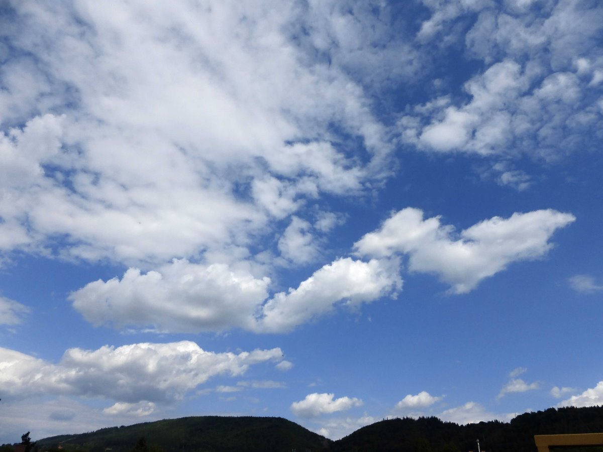 Rána stále chladná, polojasno, slabý JZ vítr. Pár mráčků postupuje od Weidenu na Marjánky a Toužim SV směrem.