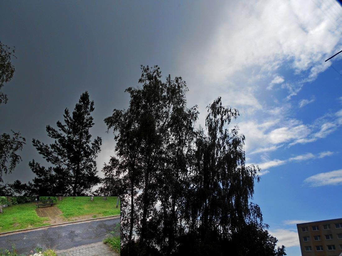 Od Pardubic jasno, od Seče zataženo. Právě dopršelo. Byla to lehká přeháňka.