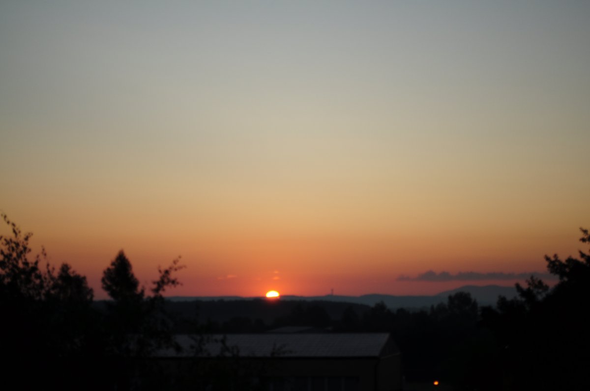 Pohled na zahradu brzy ráno, bezvětří , ale chladno