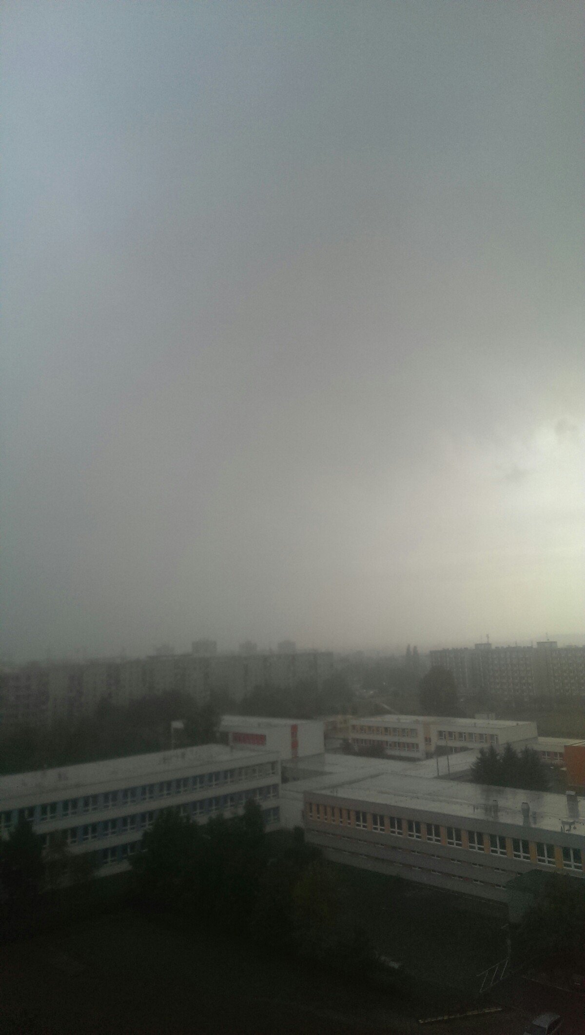 Vypadá to, že by mohlo každou chvilku začít pršet. Vítr se utišil. Tlak 1017,3 hPa a vlhkost 65 %.