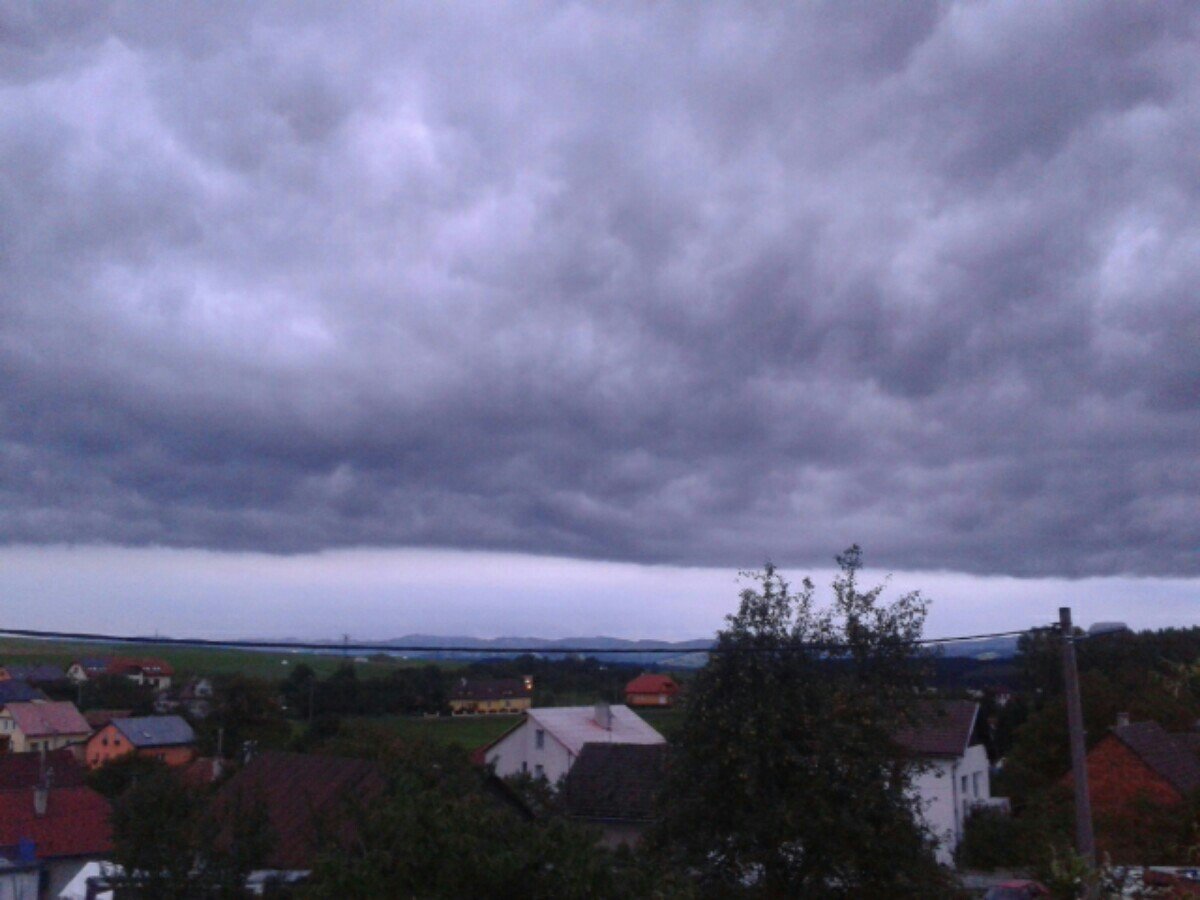 tlak 1011.3 hPa, vítr 1.7 m/s-Z, vlhkost 93%, srážky 1.3 mm/hodinu