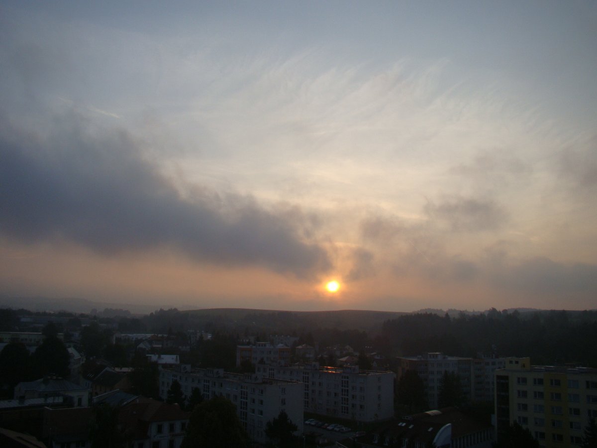 Oblačnost 70,1%, zákl.oblačnosti 994,36m, tlak 1018,7hPa, dohlednost 20km, vlhkost 84,2%, abs.vlhkost 11,56g/m3, J vánek 188° 1,5m/s(1 Bft), poc.teplota 16,61°C, tepl.rosného bodu 13,41°C, tepl.mraků 6,32°C, UV-Index 0,3, BIO st.č.1-mírná zátěž. Měsíc zapadl v 0:24, vyjde v 16:02 a viditelnost je 76,8%. Slunce vyšlo v 6:09 a zapadne v 19:25.