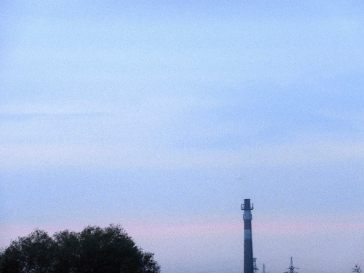 Klidno,tlak 1013hPa,vlhkost 62%.Obloha před západem Slunce.