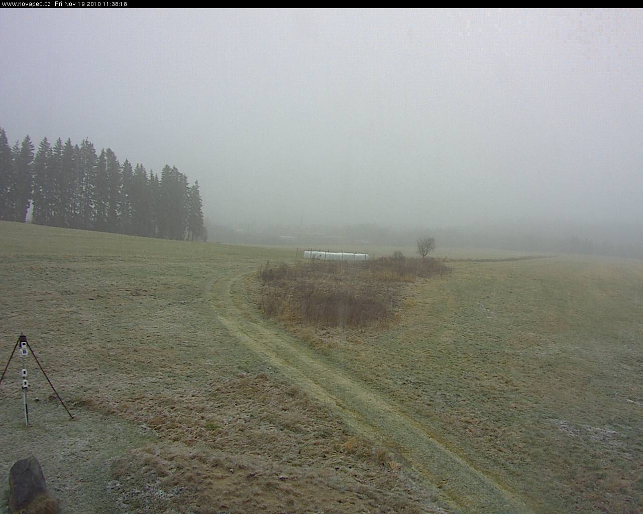 Zataženo,mírný vítr,od východu se to začíná protrhávat,slabounce mrholí.