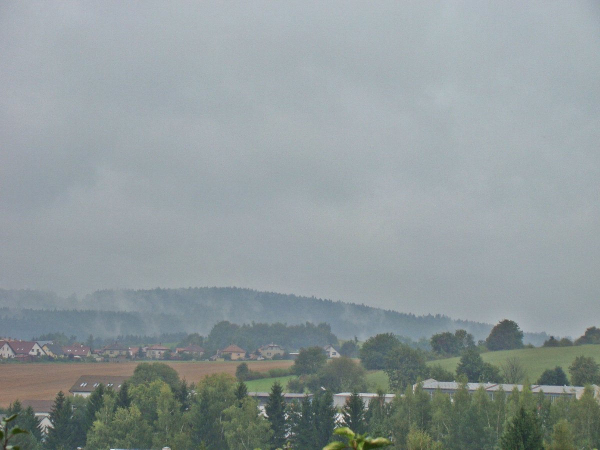 Už hodnou chvilku leje. Srážky 3 mm, vítr JV.
