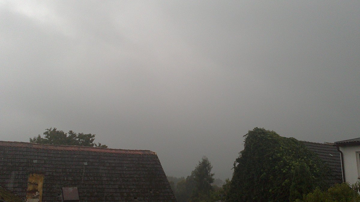 Zataženo, zrovna přestalo pršet. Bezvětří, tlak 1014 hPa a vlhkost 91 %.