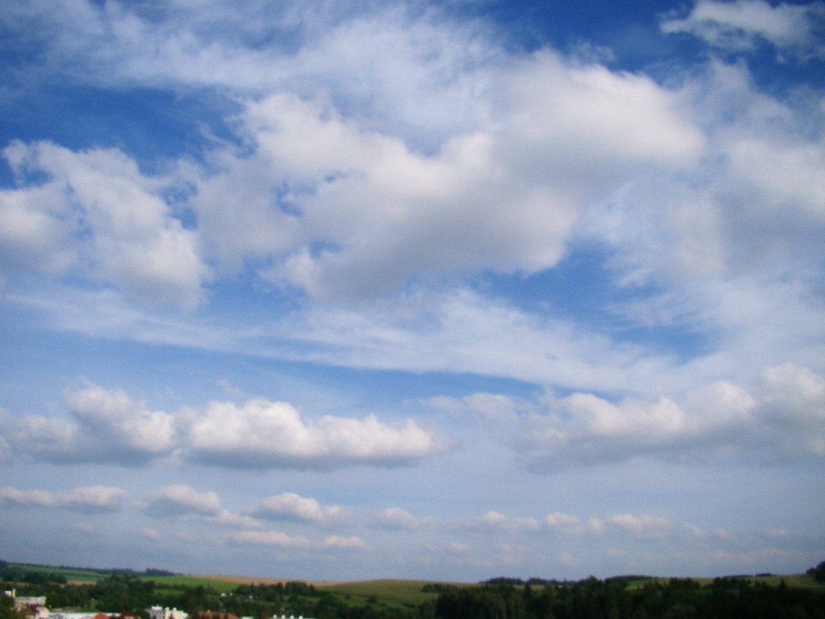 řídké cirry rozptýlené po celé obloze + stratokumuly celkem 4 občas 5/8 , JV vítr 3 až 8 občas v poryvech do 12 m/vt , tlak 1017,3 hPa , dohlednost 25 km