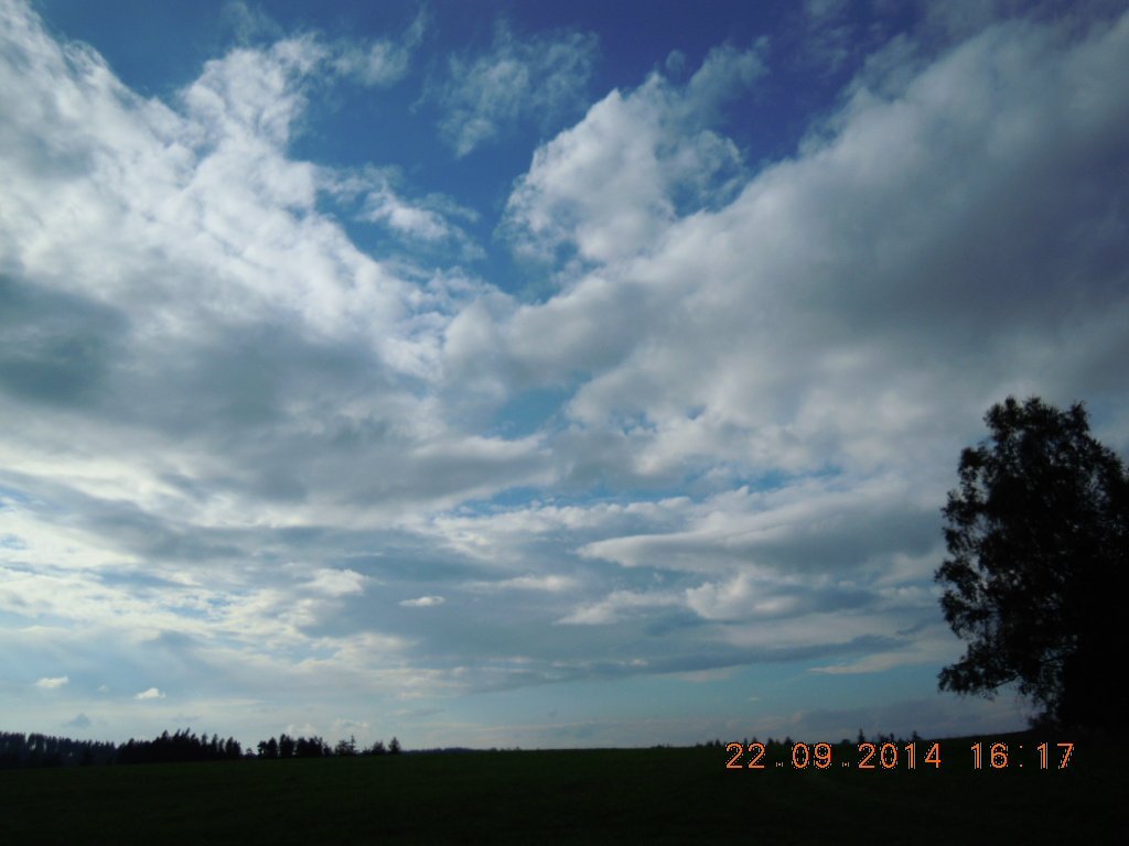 Oblačno s krátkou dešťovou přeháňkou. SZ vítr v nárazech 8 km/h, tlak 1010,5 hPa a vlhkost 79 %.