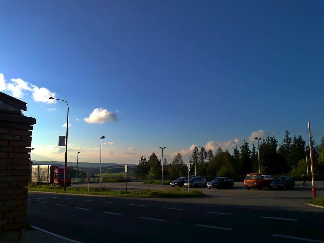 Slabý vítr,tlak 1017hPa,vlhkost 64%.Dnešní západ Slunce