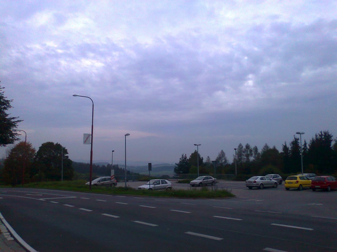 Tlak 1026,vlhkost 87% opar skáče nahoru a dolu - město je v oparu díky bezvětří a řece - menší dešťová přeháňka