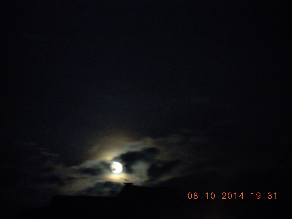 občas vykoukne i měsíc - foto z 2014 10 08 v 18:19 zachycuje oblčnost která se začínala tvořit nad hlavou a bylo 14°