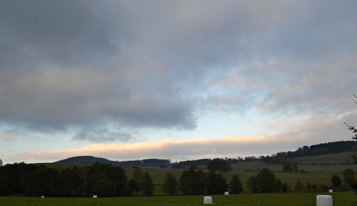 Oblačnost se protrhala,pofukuje slabý vítr,tlak 1010hPa,vlhkost 81%