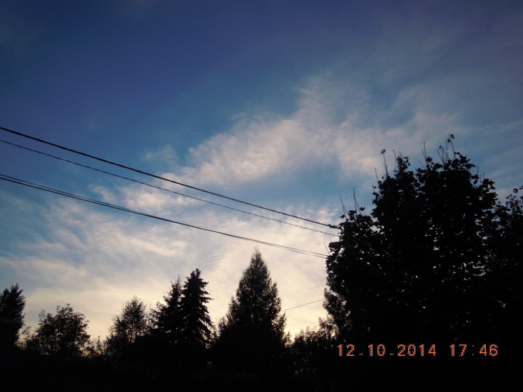 Klidno,tlak 1011hPa,vlhkost 68%.Slunce pomalu zapadá do vysoké oblačnosti.