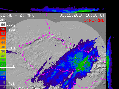 teplota ľahko nad nulou, sneží už iba slabúčko. Tlak začína ale klesať...