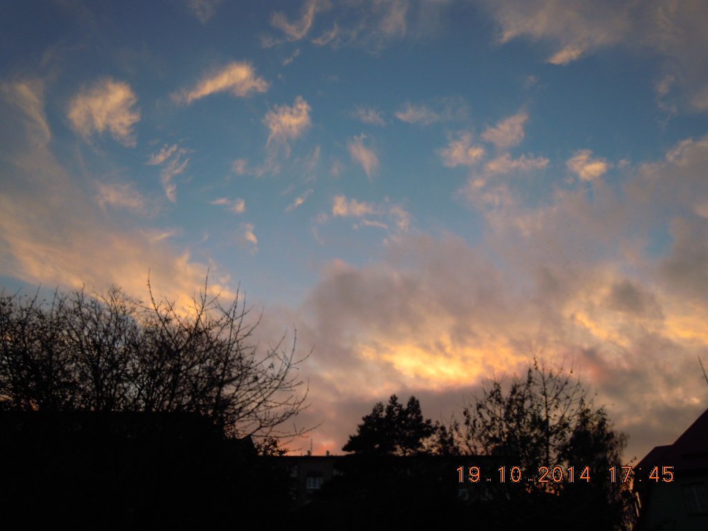 foto z 2014 10 19 v 17:15 zachycuje mraky, které pomalu přicházejí na krásně modrou oblohu, která tu byla celé odpoledne - teplota byla +15°