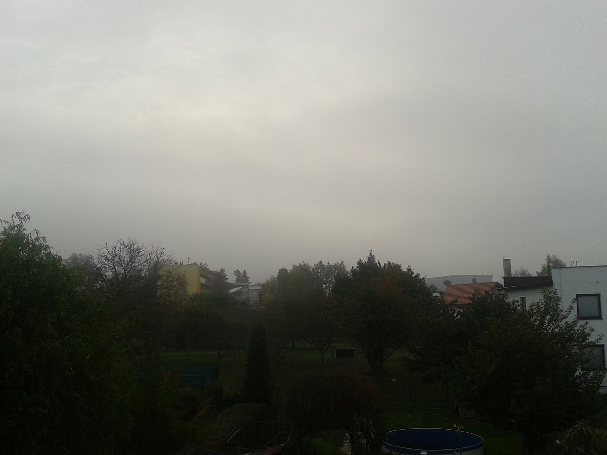 Skoro zataženo - nízká i vysoká oblačnost. Bezvětří, tlak 1016,8 hPa a vlhkost 86 %.