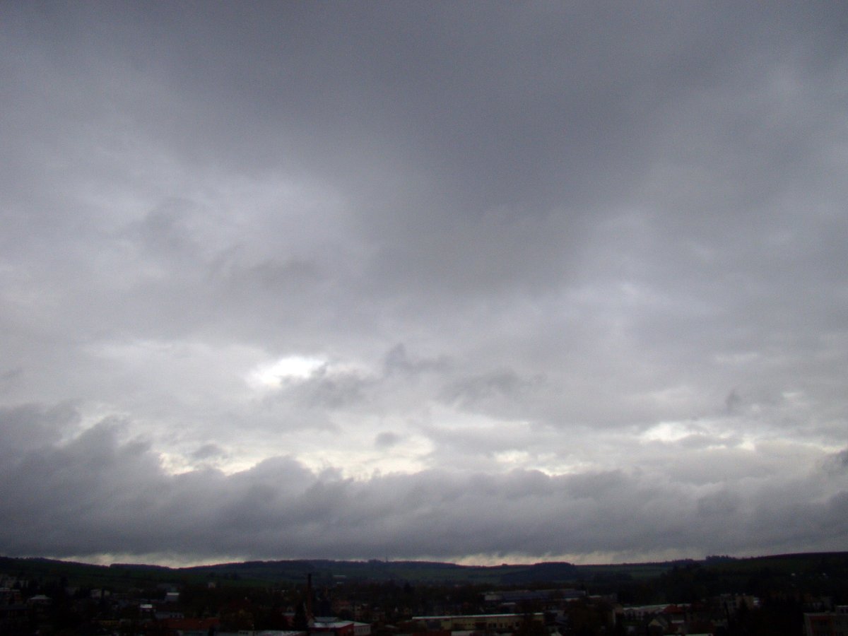 nyní se objevují černé mraky a dokonce slunko - v 16:18 byla obloha fádně oblačná - trochu fouká vít